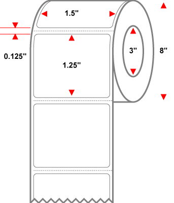1.5" X 1.25" White Permanent Thermal Transfer Label Premium Paper - 8" Roll With 3" Core - Perforated 8 Rolls of 4450 - 35600 Labels Per Carton - MPN: RT-15-125-4450-3