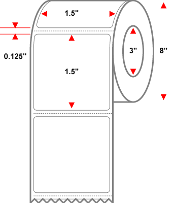 1.5" X 1.5" White Permanent Thermal Transfer Label Premium Paper - 8" Roll With 3" Core - Perforated 8 Rolls of 3,600 - 28800 Labels Per Carton - MPN: RT-15-15-3600-3