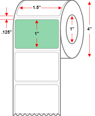1.5" X 1" Green Permanent Direct Thermal Label For Desktop Printers Premium Paper - 4" Roll With 1" Core - Perforated 12 Rolls of 1375 - 16500 Labels Per Carton - MPN: RD-15-1-1375-GR
