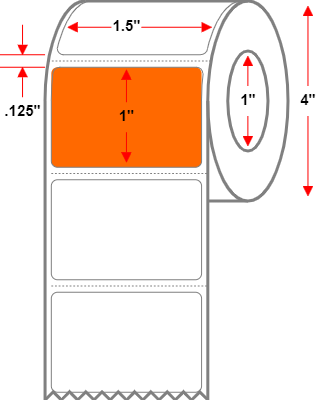1.5" X 1" Orange Permanent Direct Thermal Label For Desktop Printers Premium Paper - 4" Roll With 1" Core - Perforated 12 Rolls of 1375 - 16500 Labels Per Carton - MPN: RD-15-1-1375-OR