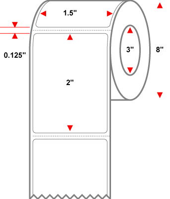 1.5" X 2" White Permanent Thermal Transfer Label Premium Paper - 8" Roll With 3" Core - Perforated 8 Rolls of 2900 - 23200 Labels Per Carton - MPN: RT-15-2-2900-3