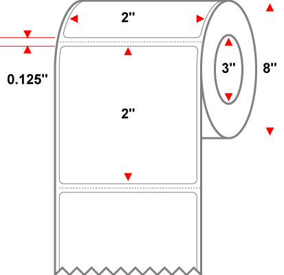 2" X 2" White Permanent Direct Thermal Label Premium Paper - 8" Roll With 3" Core - Perforated 8 Rolls of 2900 - 23200 Labels Per Carton - MPN: RD-2-2-2900-3