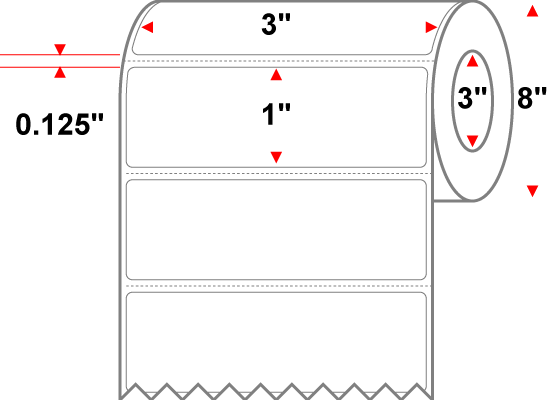 3" X 1" White Removable Thermal Transfer Label Premium Paper - 8" Roll With 3" Core - Perforated 8 Rolls of 5500 - 44000 Labels Per Carton - MPN: RE-3-1-5500-3