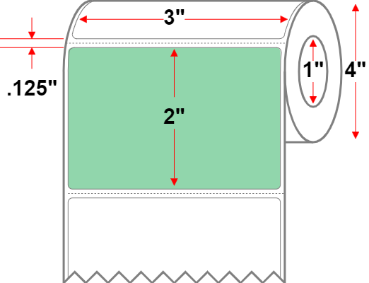 3" X 2" Green Permanent Direct Thermal Label For Desktop Printers Premium Paper - 4" Roll With 1" Core - Perforated 12 Rolls of 735 - 8820 Labels Per Carton - MPN: RD-3-2-735-GR