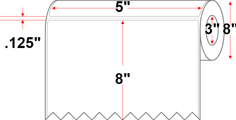 5 X 8 Premium Paper Thermal Transfer Label - Perforated - White - 8" Roll - Permanent